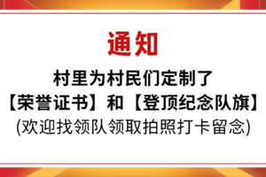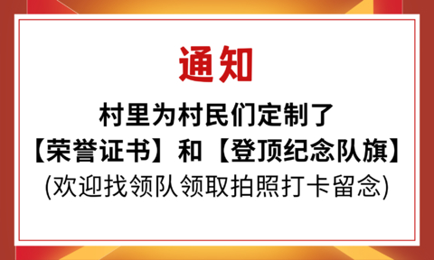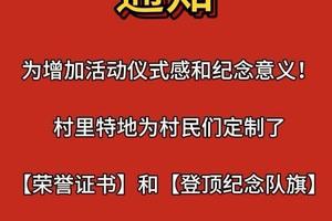 通知:为增加活动仪式感和纪念意义!村里特地为村民们定制了【荣誉证书】和【登顶纪念队旗) [复制链接]