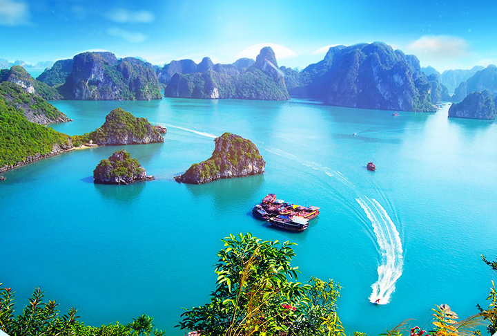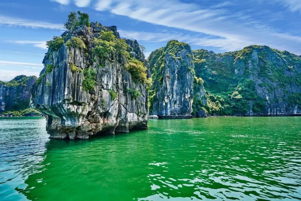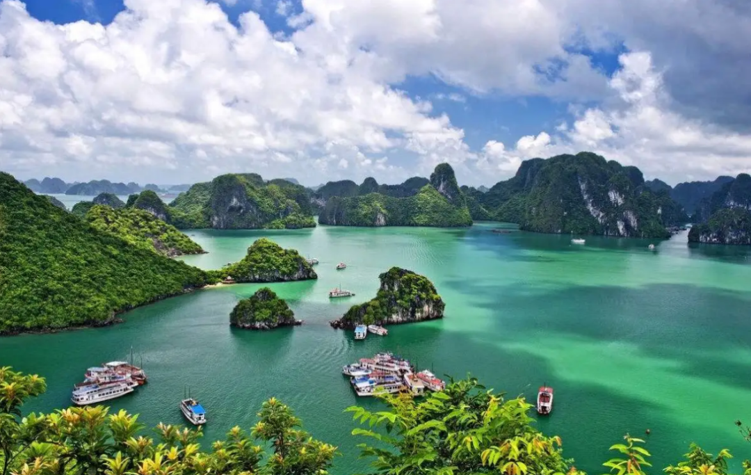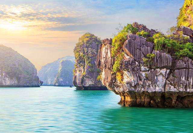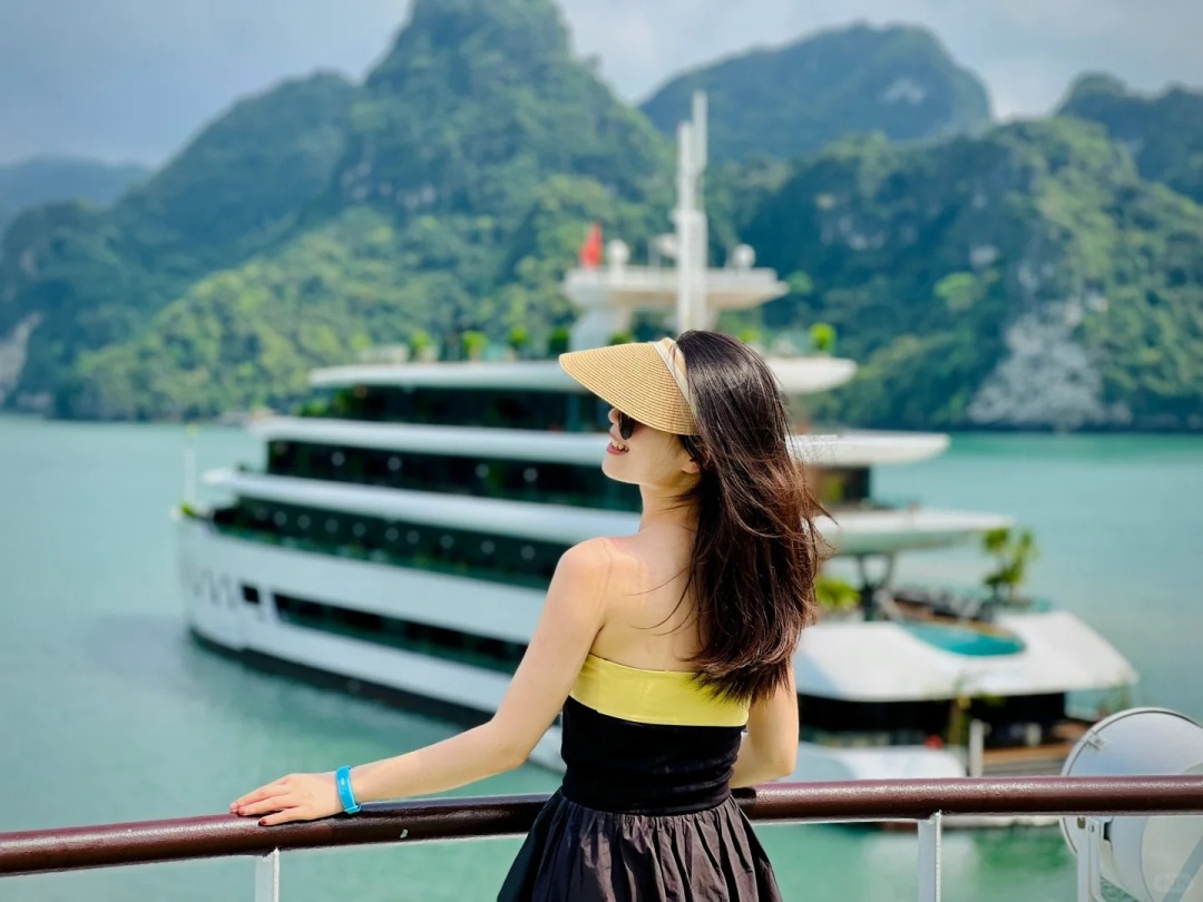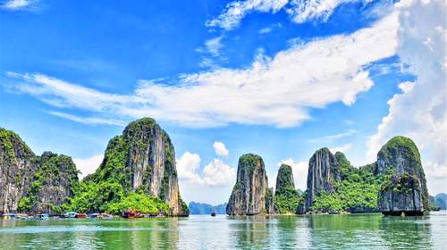 乘游轮漫游被国际教科文组织评为世界自然遗产之一的“海上桂林”—下龙湾,在 1500多平方公里的海面上、耸立着 3600 多座大小不一、千姿百态的喀斯特地貌的山石、更以其“海美、山幽、洞奇”三绝而享誉天下。