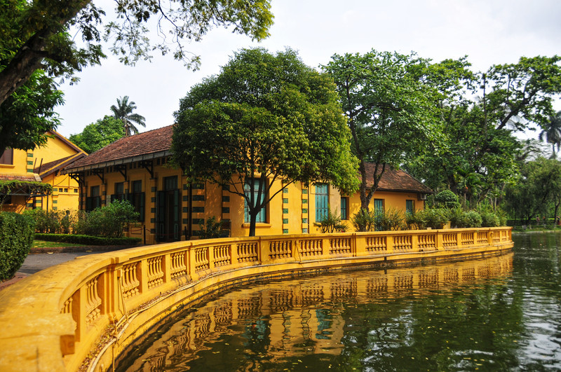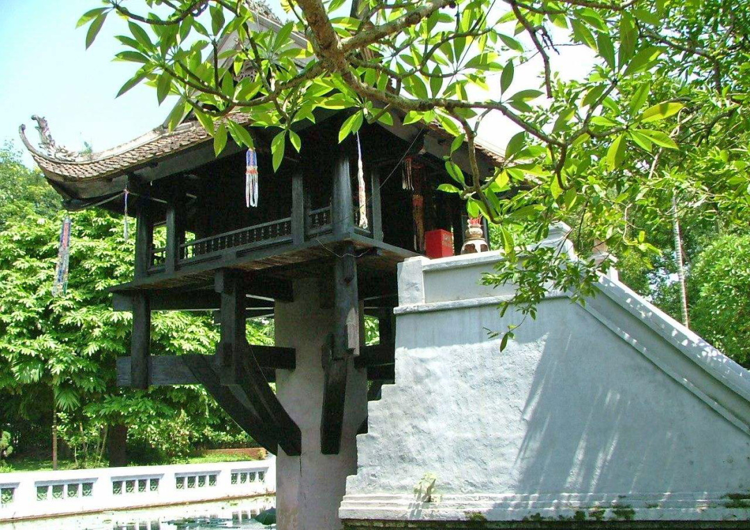 建于1049年的具有佛教色彩的古老寺庙【独柱寺】也是越南独具一格的古迹之一,因该寺建在灵沼池中一根大石柱上而得名。