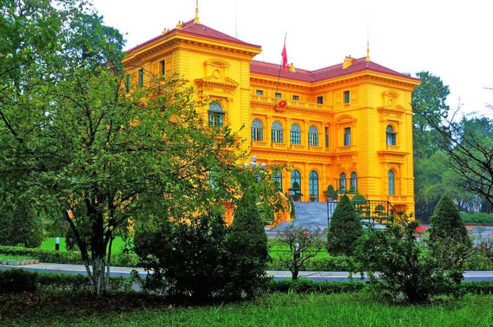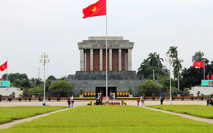 越南著名的名胜古迹,有中国天安门广场美称的【巴亭广场】宽广的广场是越南人民崇敬的领袖胡志明主席宣读《独立宣言》,宣布越南民主共和国成立的地方。