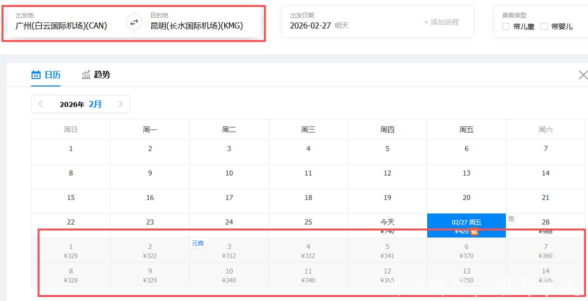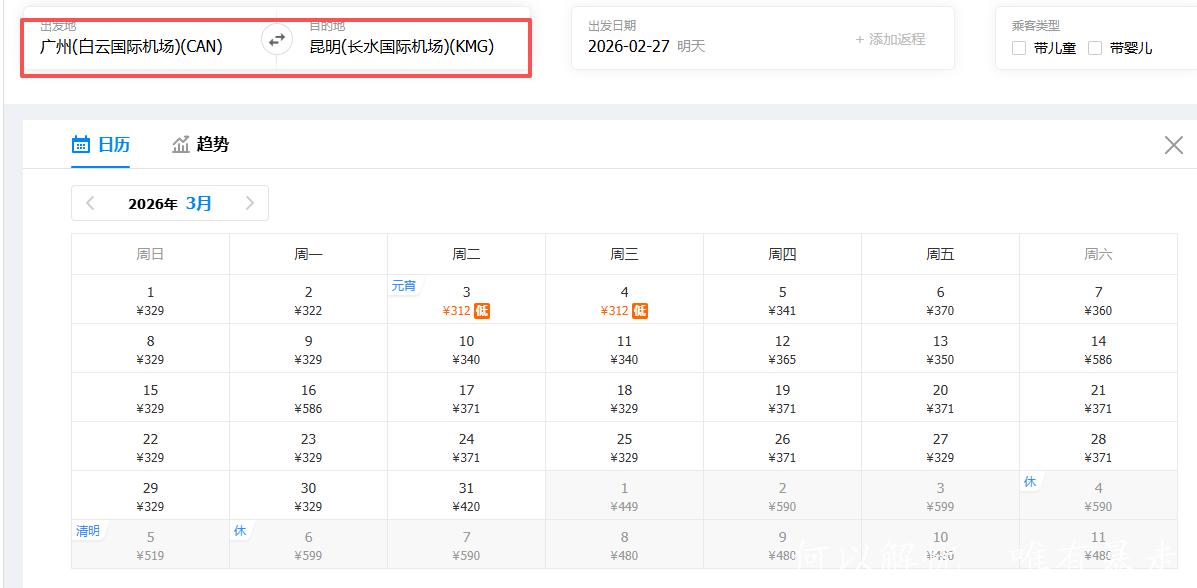 三月出行,广州直飞昆明,机票价格低至312元起!