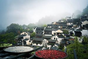 一蓑烟雨梦徽州,青砖黛瓦马头墙。春日的雨时断时续,远处的山若隐若现,雾衬着山来回游动,这就是篁岭上的烟雨徽州人家