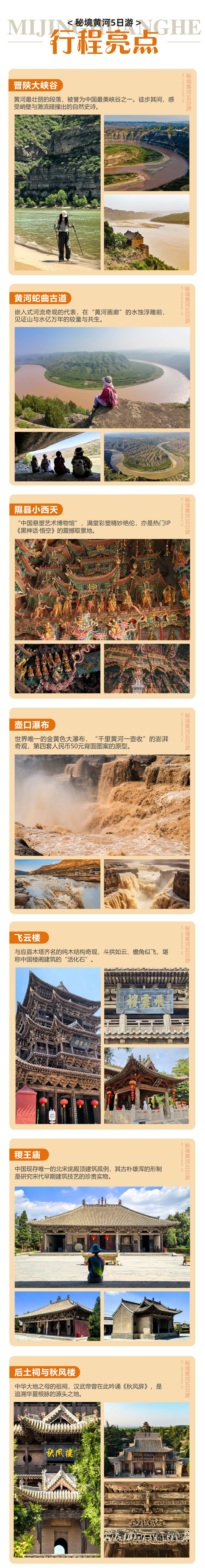 温馨提示:壶口瀑布优先安排山西侧景区,如果遇到节假日堵车,将会根据堵车情况,灵活安排山西侧或陕西侧游览。