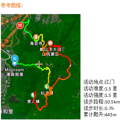 高难虐线定义:1.5个大梧桐山,能爬升1500米高+走22公里长,适宜年龄18-55岁