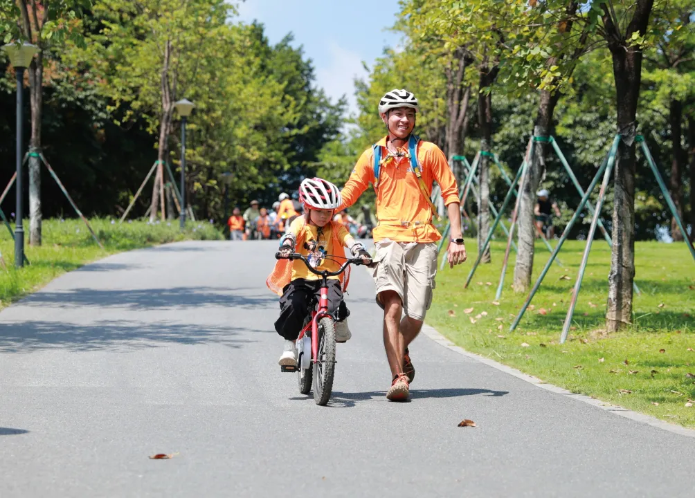 白云湖的安全环境,让孩子更畅快的骑行