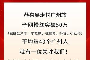 喜讯!恭喜暴走村广州站全网粉丝突破50万 (包括公众号、小程序、视频号、抖音、小红书) [复制链接]