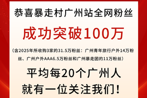 喜讯!!恭喜暴走村广州站全网粉丝 成功突破100万! [复制链接]