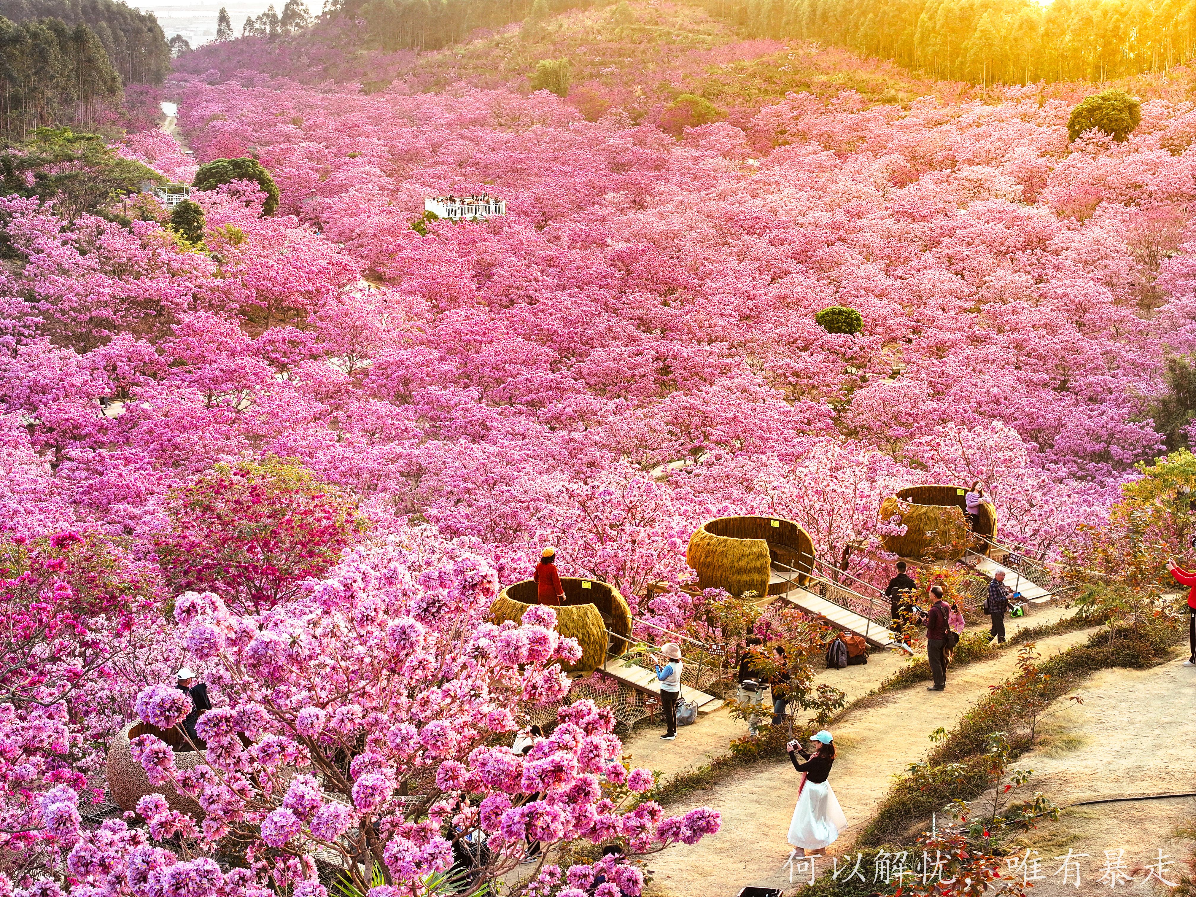 14:30 抵达紫花风铃规景区,34万平方米的紫花风铃,满树铃铛、姹紫千红的紫花风铃盛开,构成一幅美如童话的仙境,会让你深深的感到震撼!摄影家的天堂!