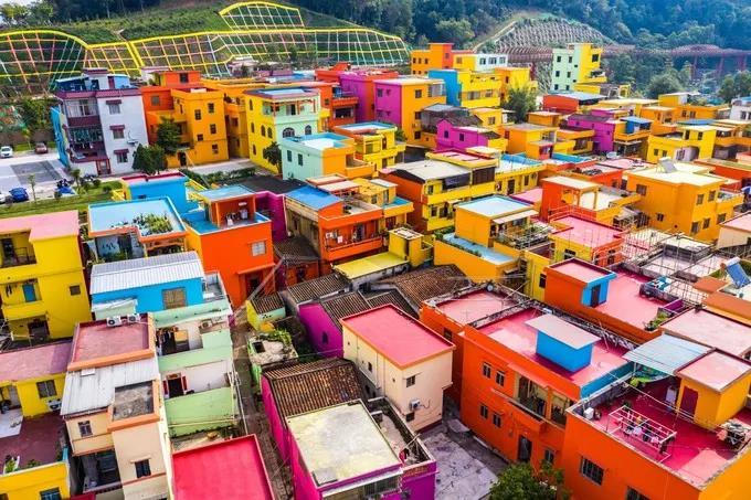 ‘’横坑村”是江门新晋网红打卡点,红、橙、黄、绿、青、蓝、紫各色混搭,这里被粉刷得像是一个小型的童话王国,走进村子,随便一站都犹如定格在画里一般,大片分分钟不在话下。