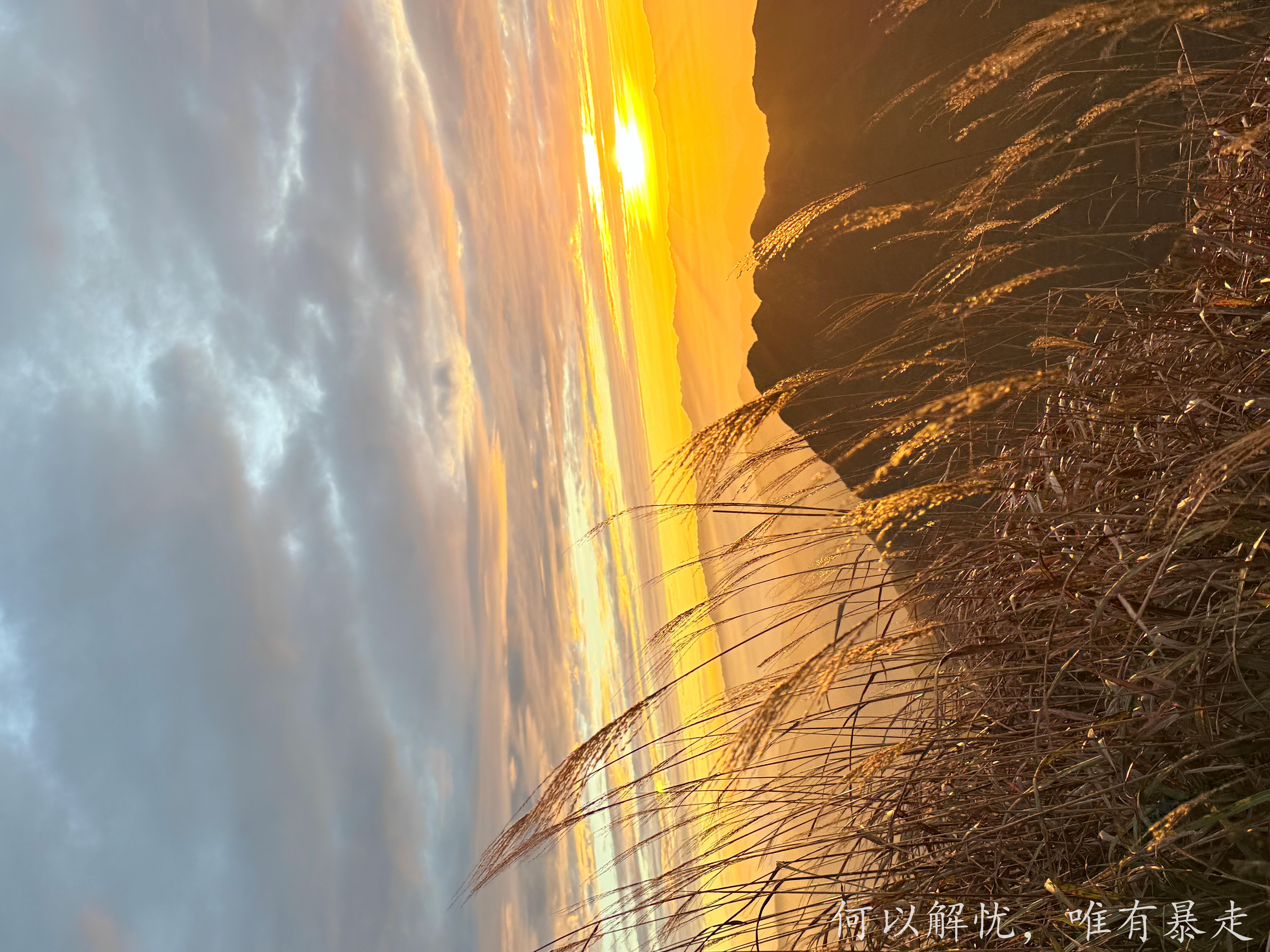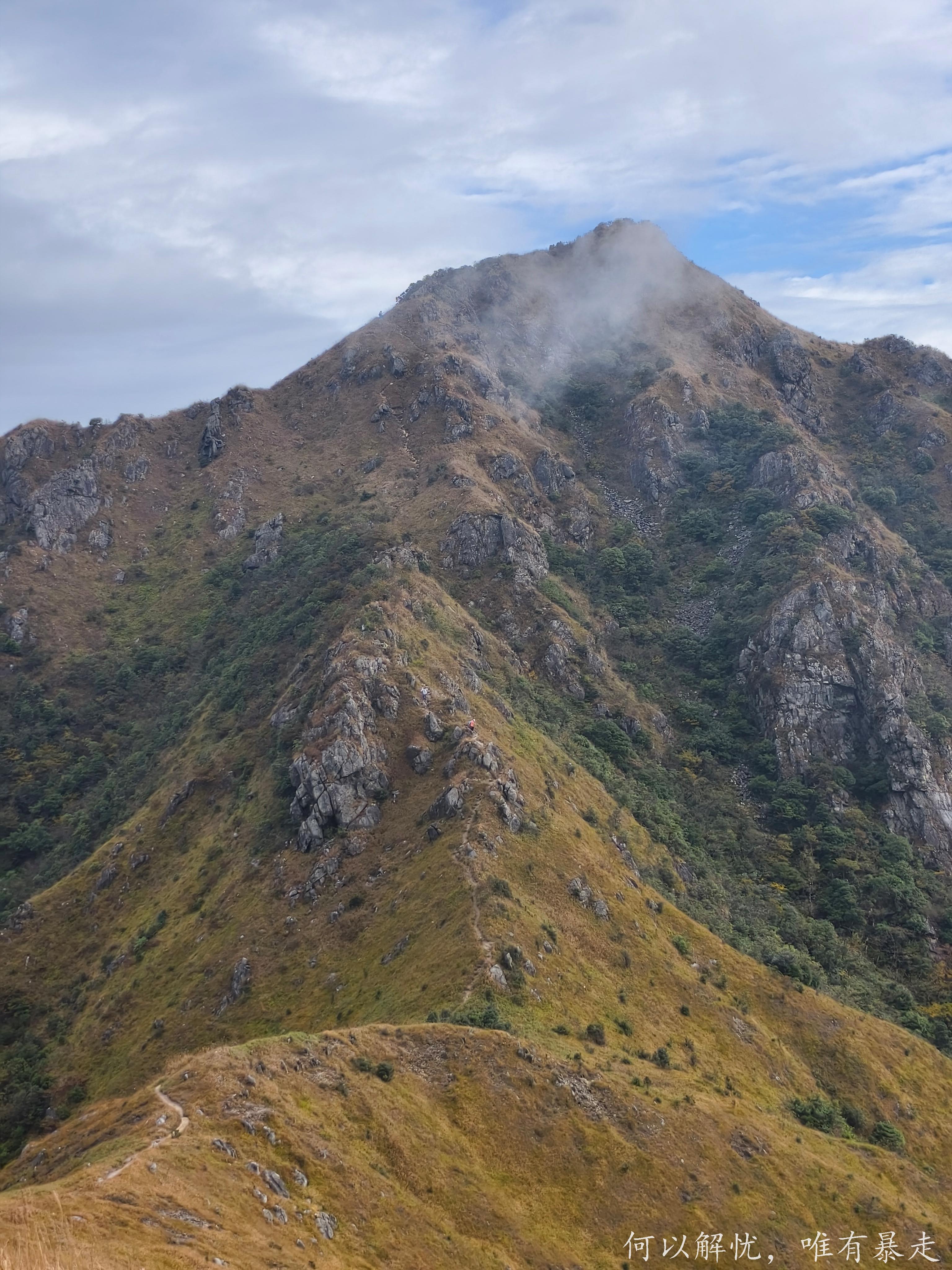 7:00 继续出发,沿着山脊徒步,到达黄牛石景区(封面打卡处)