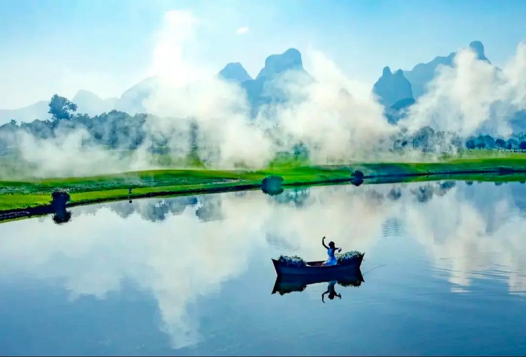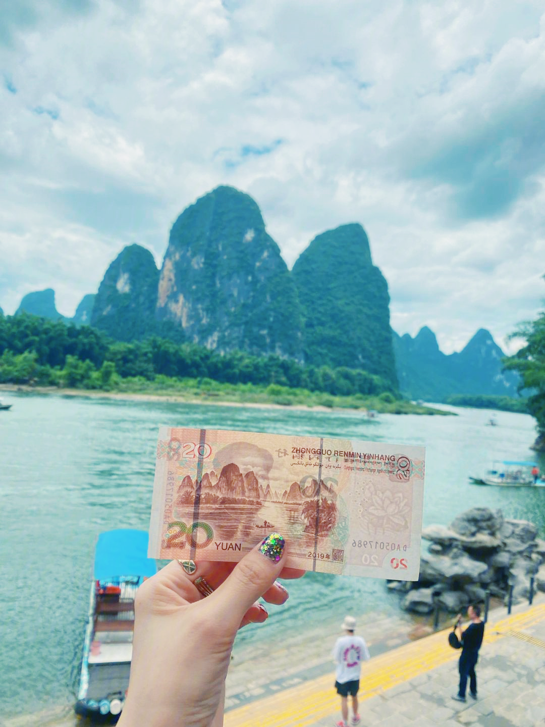 20元人民币的背景取至于兴坪的漓江段的元宝山,站在岸边看轻舟穿行于碧波之上,游不完的山水之美,述不完的漓江与漓江的故事