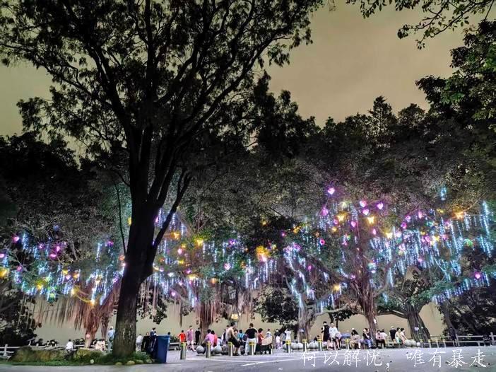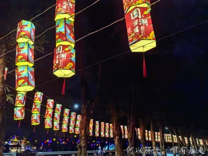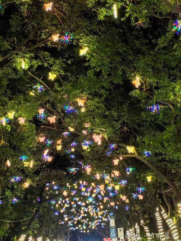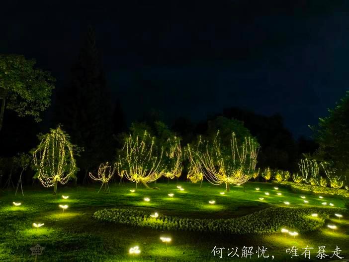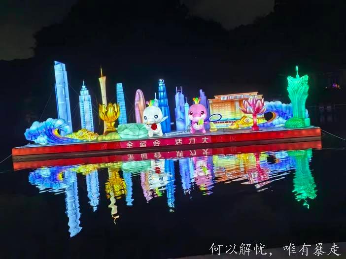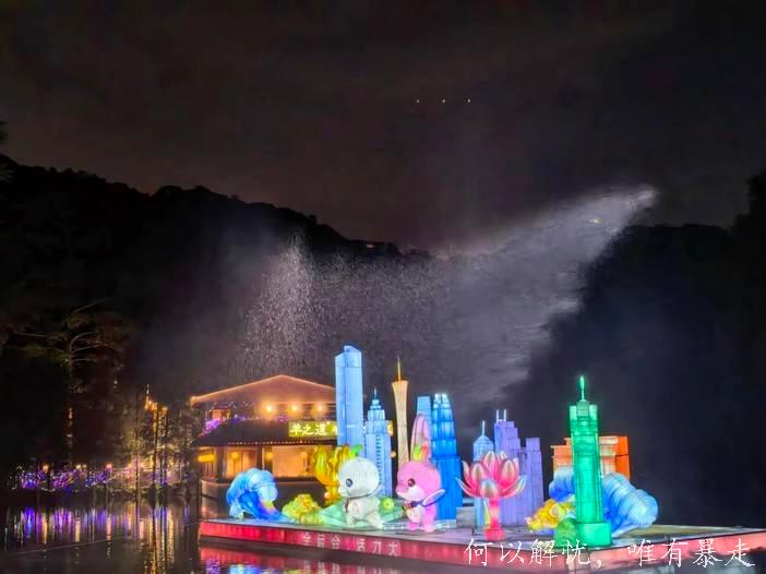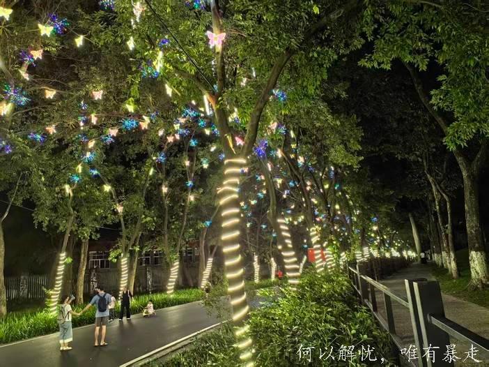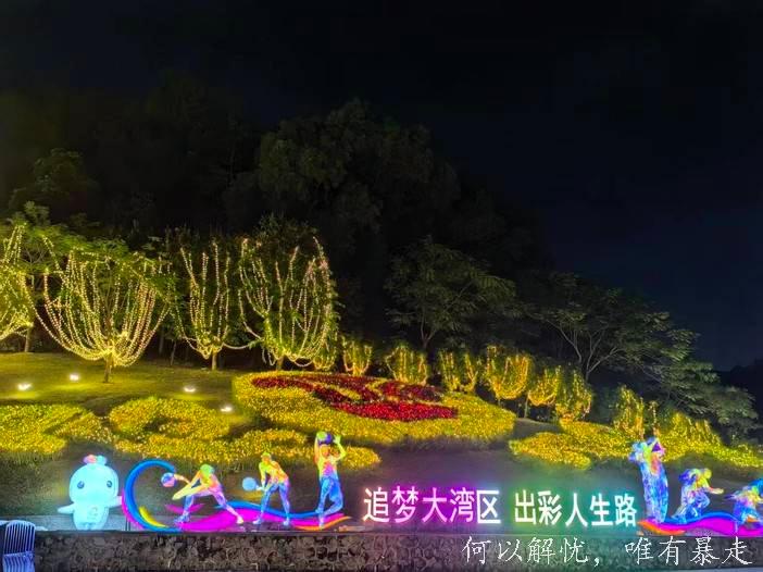白云山东西门灯光秀以第十五届全国运动会为主题,在白云山西门、粥城路口、明珠湖、桃花涧门口、白云松涛等五个景观节点的草坪、树木和湖面上打造了流光溢彩的夜景长廊。