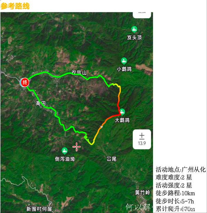 本次路线由泥路、水泥路、竹林路等组成,徒步总全程约10公里,累计爬升约670米,不适合小白。