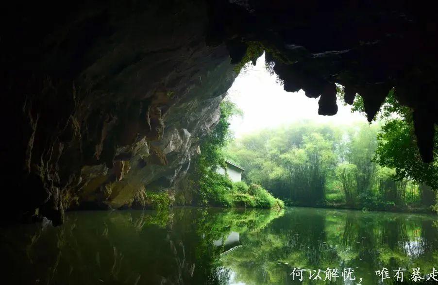 从岩口山下乘小船游览第一段地下河,洞中的蝙蝠被惊动后会成群飞出。这一段暗河长300多米,洞中有河,河中有洞。穿出岩口暗河就来到了九曲溪,这是一段明河,全长1500米,两岸长满芭蕉翠竹,还有稻田耕牛,一派田园风光