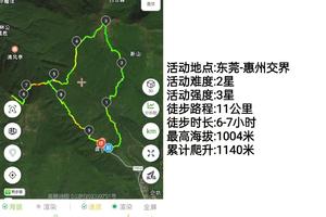 难度中等偏上,全程山路+石板台阶路,起点和终点相同,线路全程约11km,爬升1000米,途中2/3处有一个下撤点,可以根据自身体力选择下撤