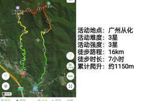 全程约16公里,大部分为土路,部分路段较为陡峭,累计爬升约1000米,最高海拔1210米,相当于1.5个梧桐山,难度中等偏上