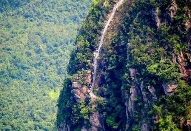 游客从海拔1300多米的高度开爬