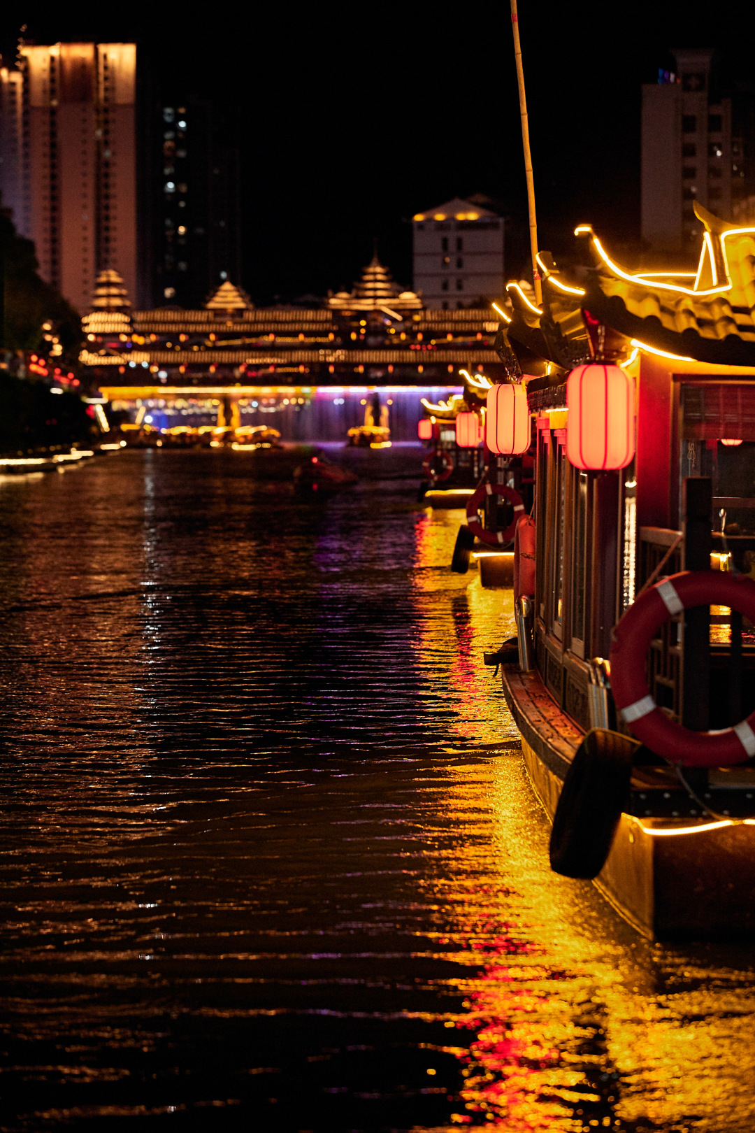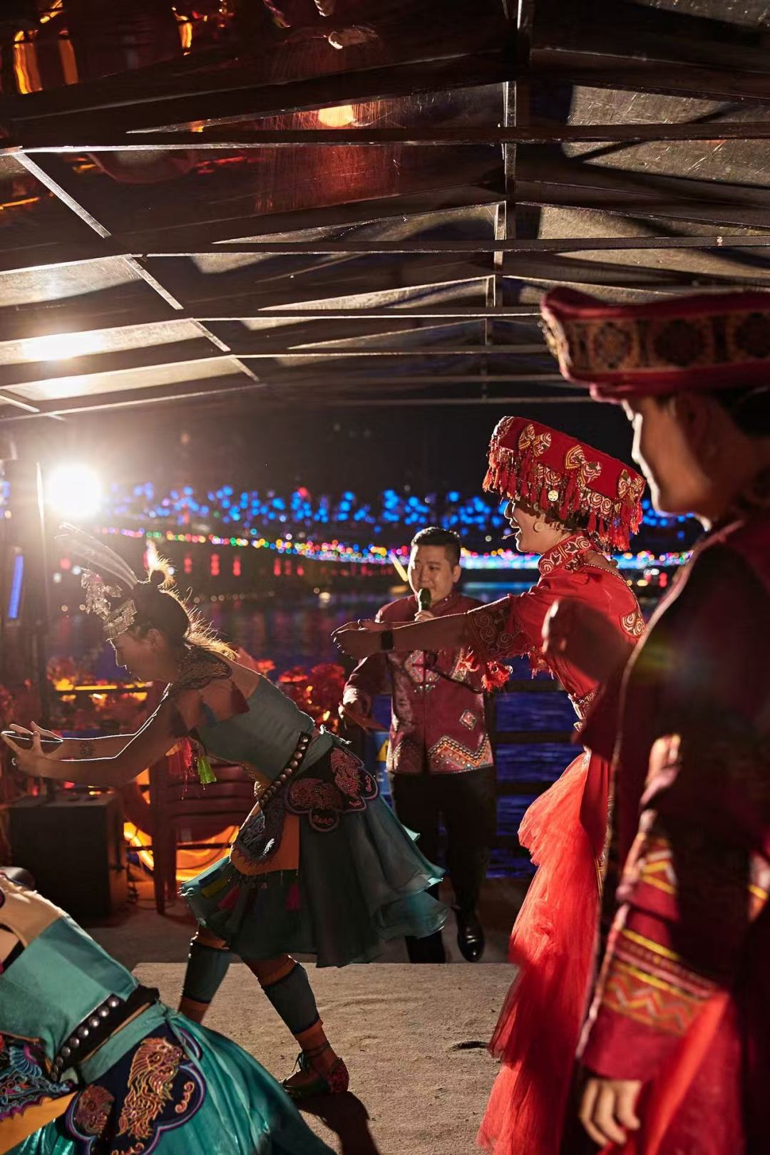 专属体验:一边享用晚餐,一边泛游在贡水河畔上欣赏宣恩夜景,餐后可自行漫步贡水河畔,感受宣恩小城的宁静与热闹;