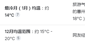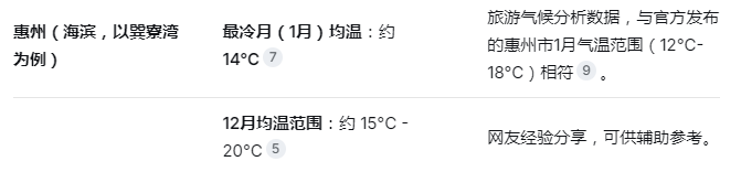 亮点2、 惠州与汕尾的冬季平均气温在14-22℃,完美的避寒圣地
