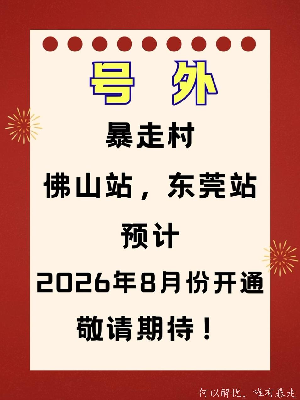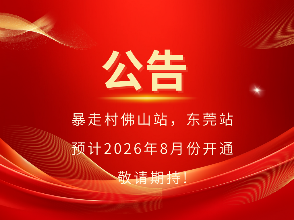 喜报!暴走村佛山站,东莞站 预计2026年8月份开通 敬请期持! [复制链接]