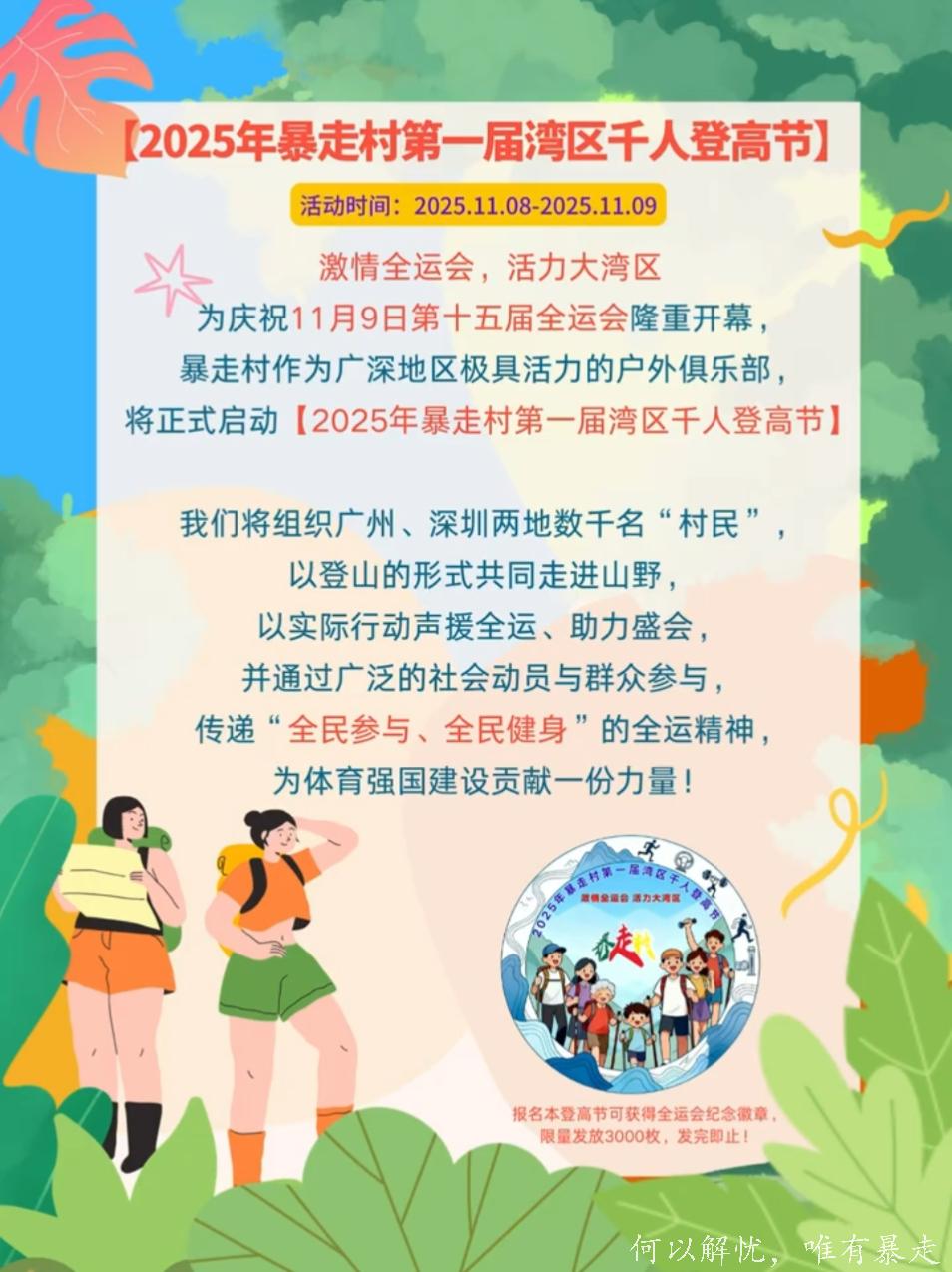 重磅消息!2025年暴走村第一届湾区千人登高节! [复制链接]