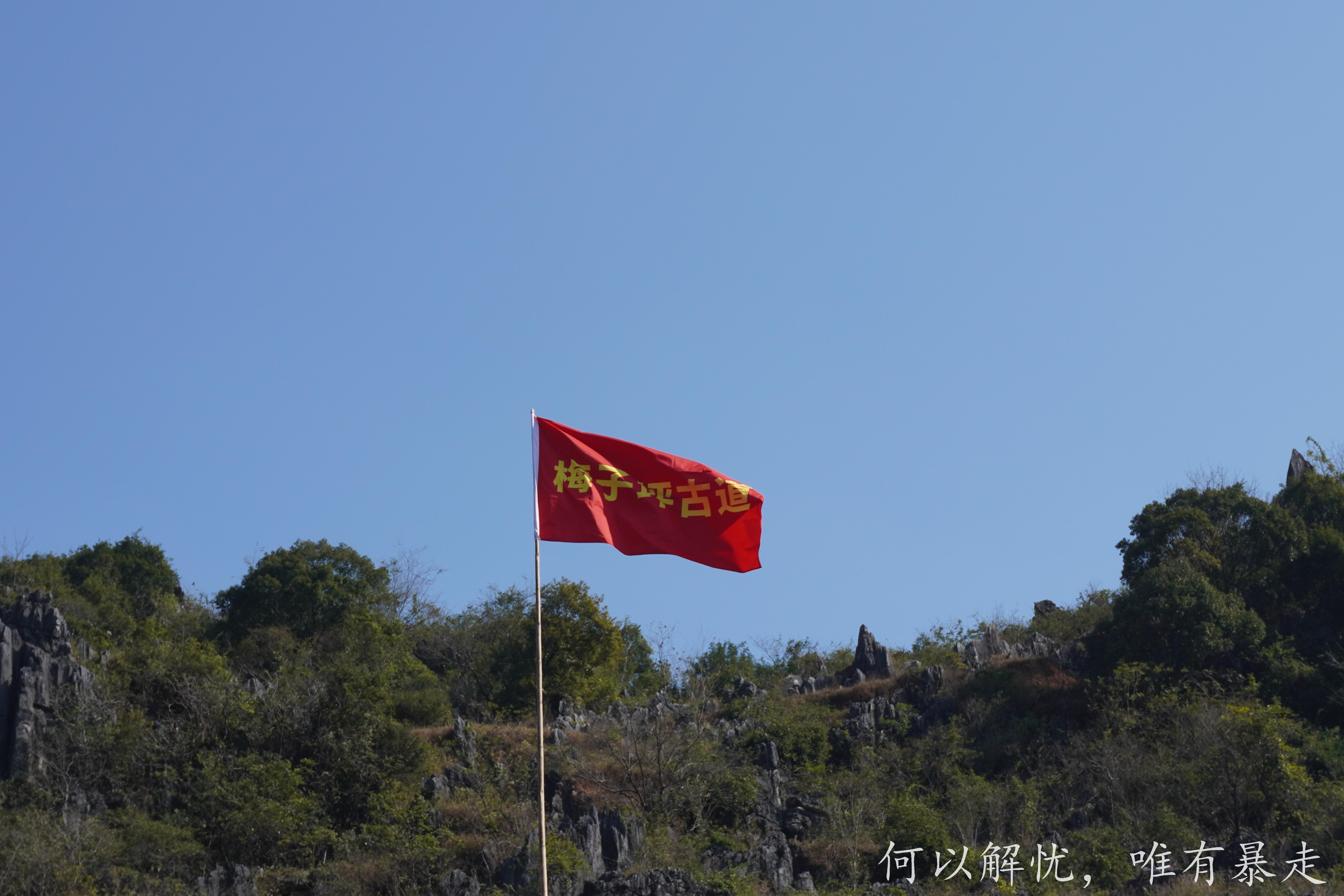 11:00 到达梅子坪古道,千年古道青石板,深深浅浅的马蹄印刻在板上