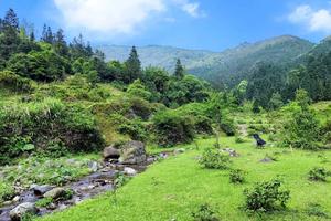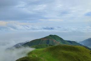 山上植被丰富,层次分明,其中东南面绿草如茵,连绵数千亩高山大草坪被誉为“南国大草原”,还有被誉为“大地母亲”的睡美人景观。