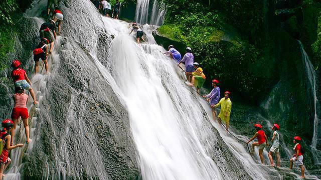 中国唯一由地下涌泉形成的多级串连瀑布【古东森林瀑布】,CCTV报道可以触摸的瀑布!