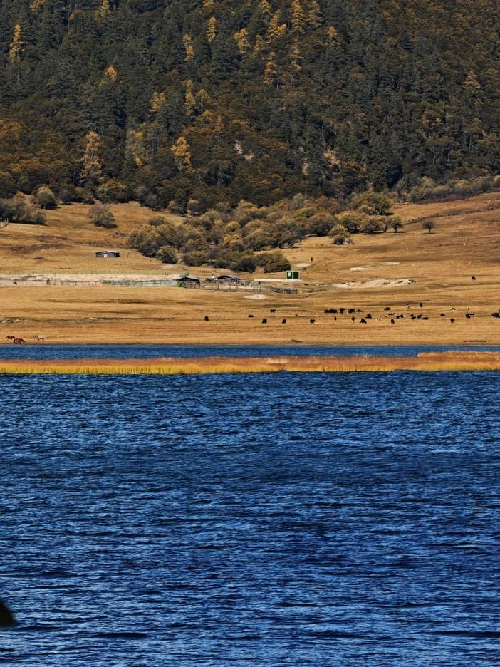 我们沿湖边栈道漫步游览3.5公里,观清澈的湖水,看水底小鱼悠游。湖四周是遮天蔽日的林木,湖畔还有个牛羊成群的牧场,充满藏区的生活情趣。春夏时节,湖畔有花海。冬季,早晨因为温差湖面上会升腾一层虚幻飘渺的白雾,能拍出较美的风光影片出来;