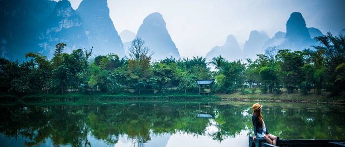 它有奇特的喀斯特地貌、诗意的山水风光、壮观的河流瀑布,古朴神秘的壮族风俗及浓郁的边关风情,所以这一带也被称为“山·海·边的时空穿越”。