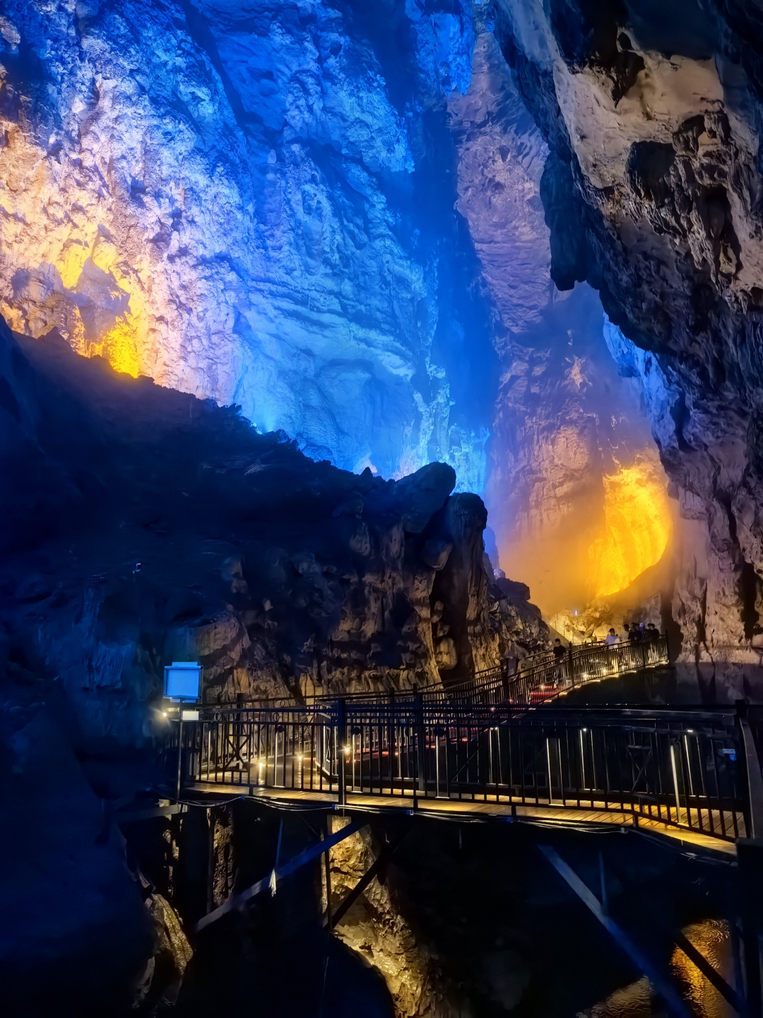 洞天盛境是国内罕见的总长约3公里的地下大峡谷,步入光怪陆离的洞天秘境,仿佛穿梭于时间与空间的裂缝之中。这里是明星同款打卡地,沿着曲折蜿蜒的栈道缓缓深入,演员王丽坤曾驻足的地方逐渐映入眼帘。