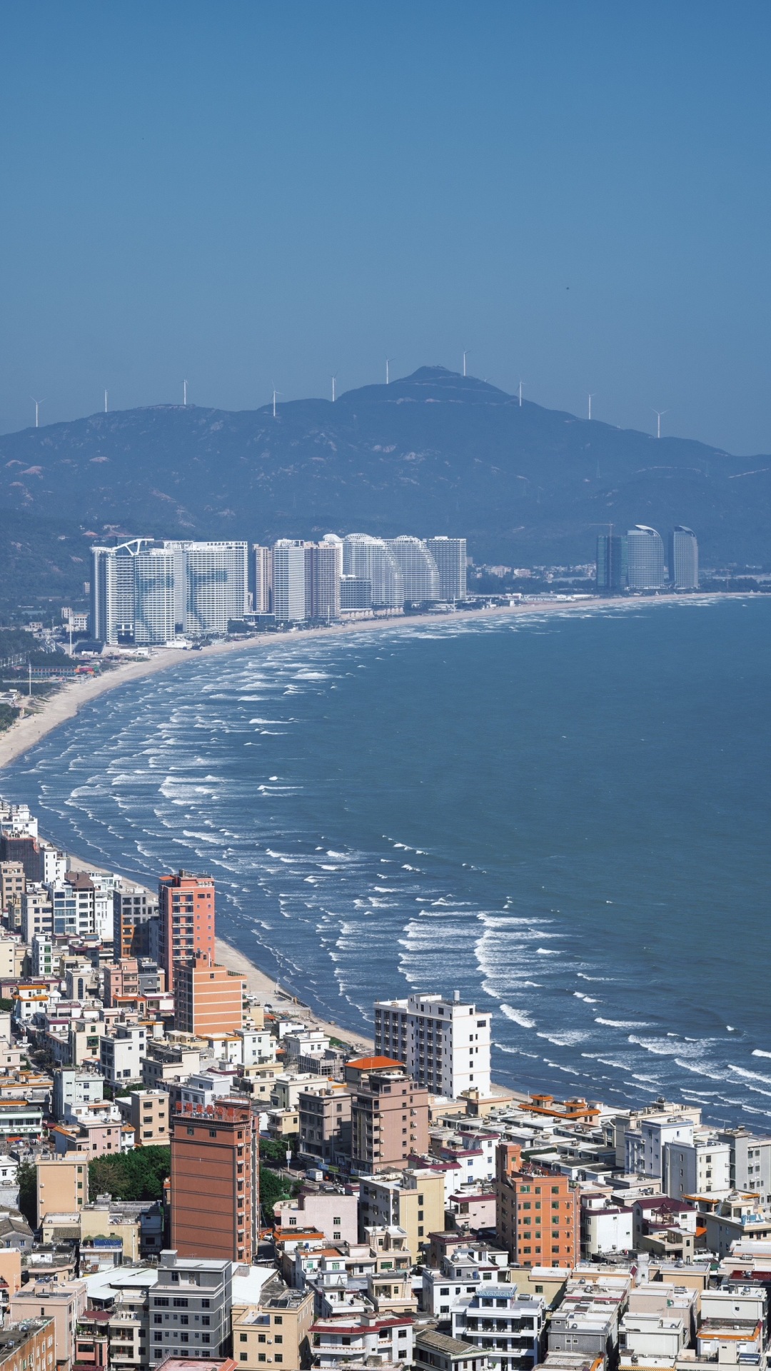 站在观景台,可以看见双月湾全景,左右两个半月,一个是风平浪静,一个是波涛汹涌,挺奇特的风景,远处青山连绵,近处是宽阔的海湾,风景尽收眼底。