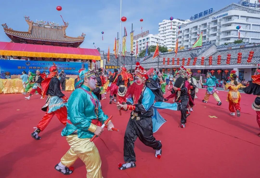 活动现场还举行了盛大的祭典仪式,舞狮、唱惠东渔歌、汉服巡游等节目轮番上演,给观众带来一场视听盛宴。