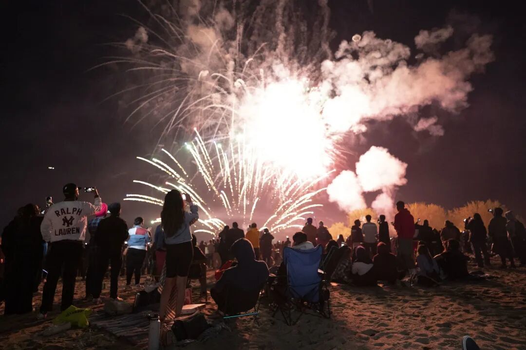 春节期间海边沙滩的烟花不间断