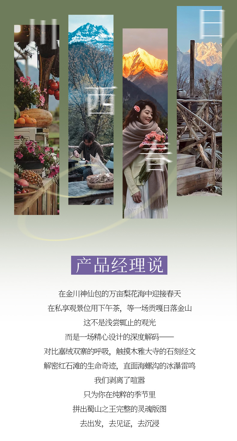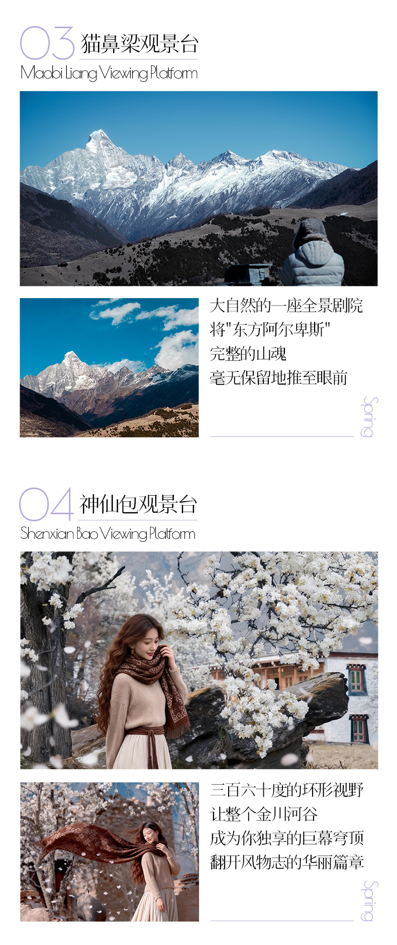 上午:清晨可拍摄藏寨晨景。随后出发前往金川神仙包梨花观景台(梨花季为3月中下旬)。