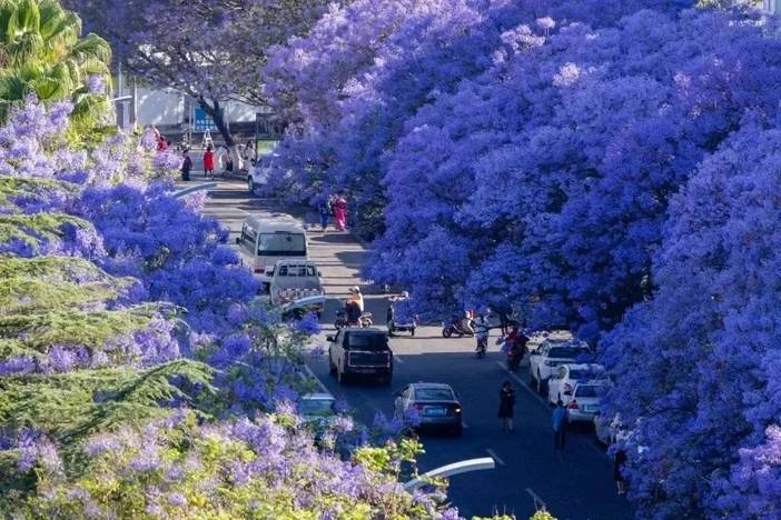 航天路蓝花楹(4-5月为花期): 拍摄浪漫紫色花街。