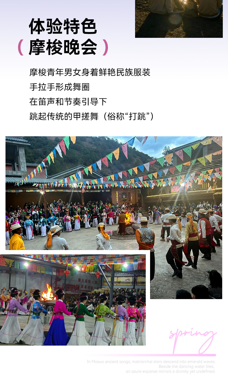 赠送九十九里温泉体验、泸沽湖摩梭篝火晚会、特色晚餐;