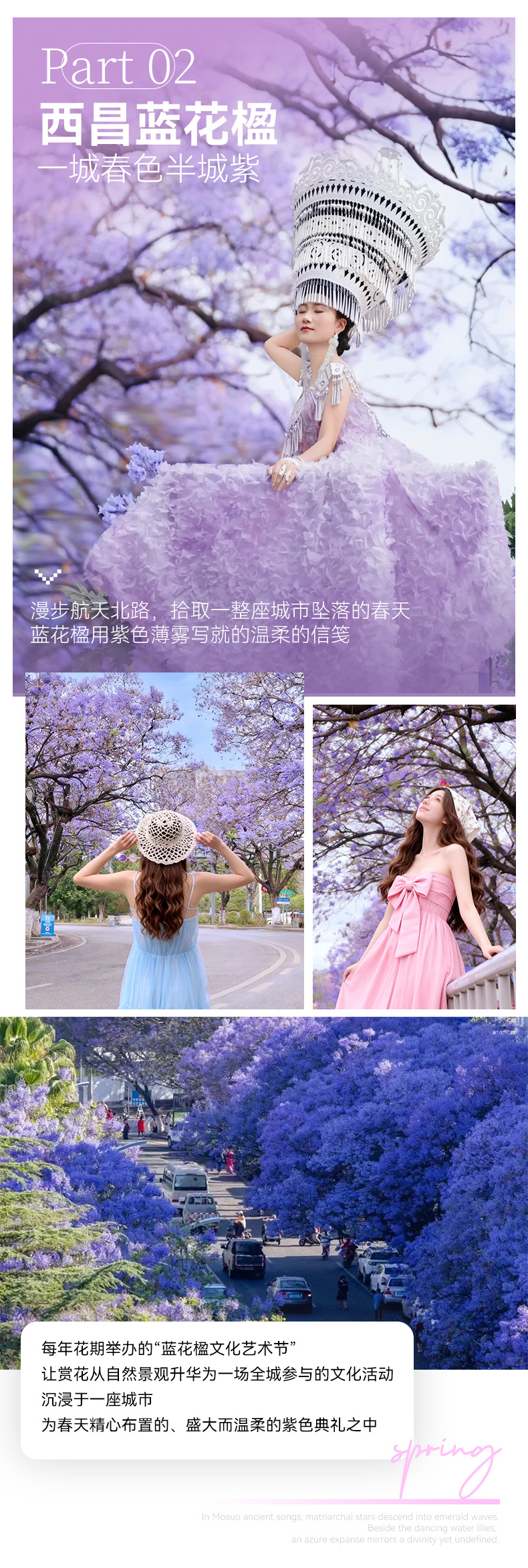 西昌一日游(航天路蓝花楹-邛海游玩/月色风情小镇-大石板村-金鳞沙滩-九十九里温泉)