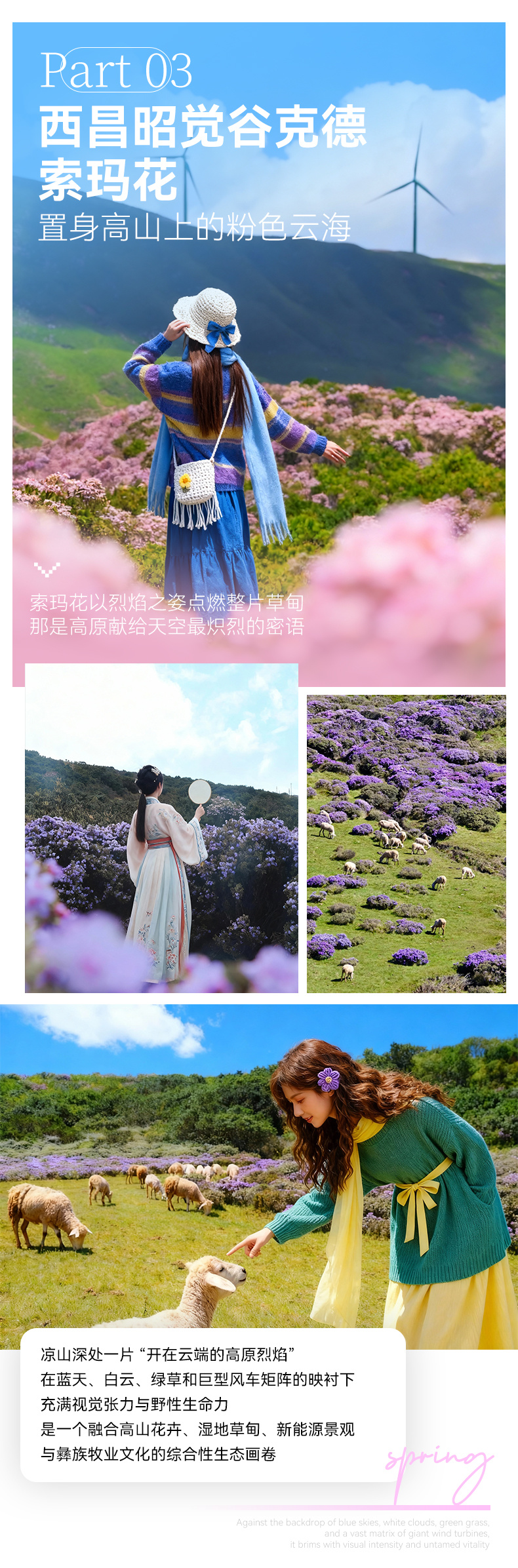 上午(7:30-12:00): 西昌出发至昭觉谷克德高原湿地(约100公里,车程2.5小时),观赏漫山索玛花(杜鹃花,花期4-6月),拍摄草原与湿地风光。