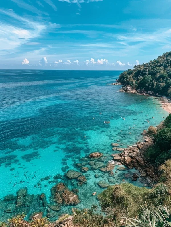 这里的海水特别清澈,能见度超高。岛周边海底分布有崎岖多姿的珊瑚礁,品种繁多的水生物与色彩斑斓的热带鱼,行程蔚为壮观的海底花园,是优良的潜水天堂。浮潜其中,与海里的小鱼共舞,像置身于一个巨大的水族馆中。