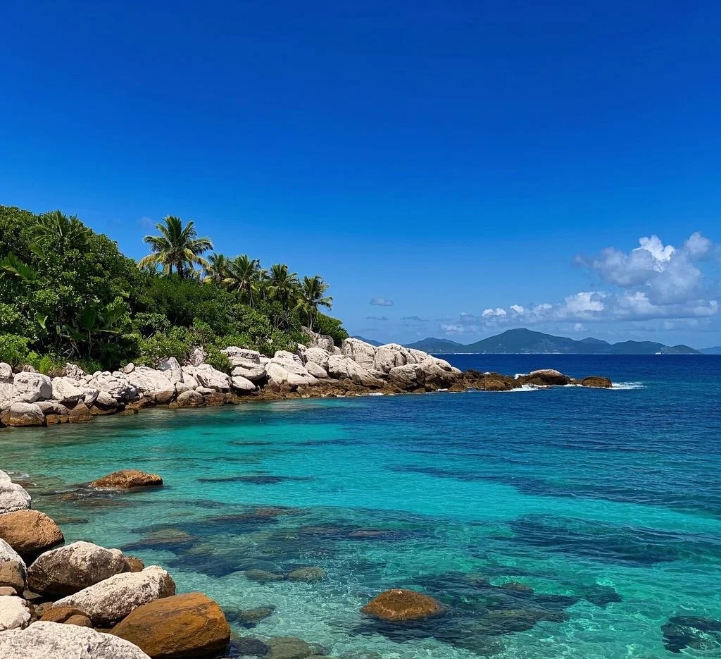 6公里的银白沙滩环绕在茂密的原始青皮林中