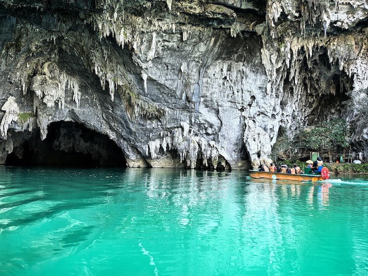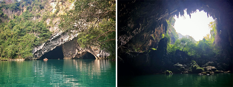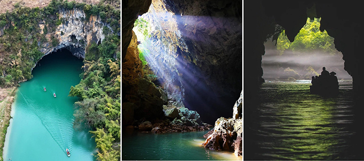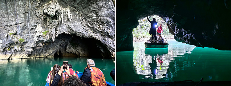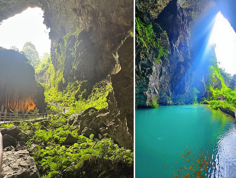 先到水波天窗【百鸟岩】,3.5小时车程。乘船深入地下暗河,探寻溶洞深处的秘密,感受“三天三夜”。抬手便可触及那些亿万年前的钟乳石。
