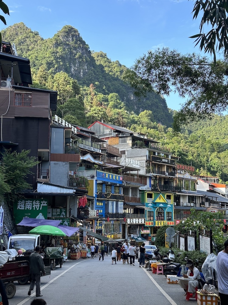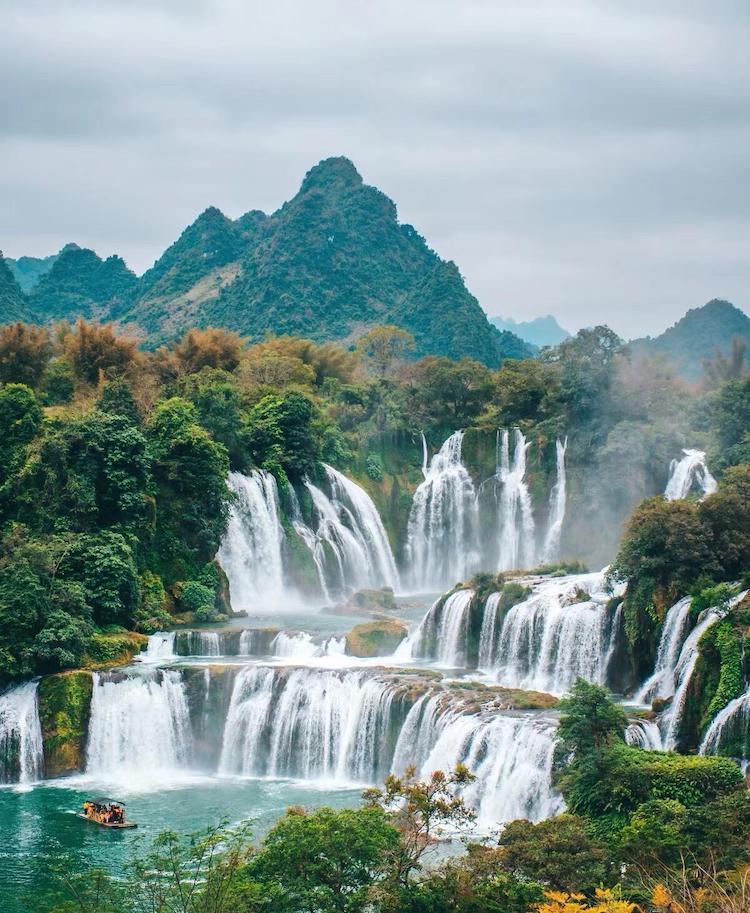 位于中越边境,与越南板约瀑布相连,是亚洲第一、世界第四大跨国瀑布,国家5A级旅游景区,以三级叠瀑风光为核心特色。