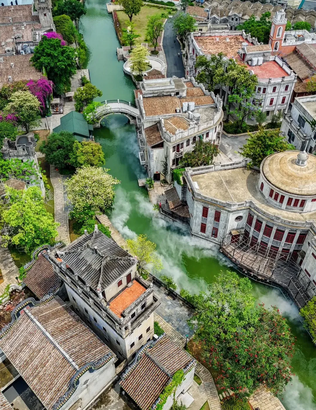 10:30到达【广东赤坎古镇侨乡国际旅游度假区】,以历史骑楼街区作为核心,打造集观光游览、休闲度假、商务会展、文化创意、和古镇体验功能为一体的综合休闲旅游度假区、世界级旅游目的地。度假区总规划面积约 120 万平方米,坚持在保护的基础上进行活化利用,以历史场景为脉络,形成古镇集华侨历史文化、商业综合、舒适休闲度假和独特的岭南骑楼建筑景观的聚集带,一河两岸独特的中西合璧建筑魅力,融入古镇繁荣的市井生活方式,为游客带来穿越时空的超凡体验。
