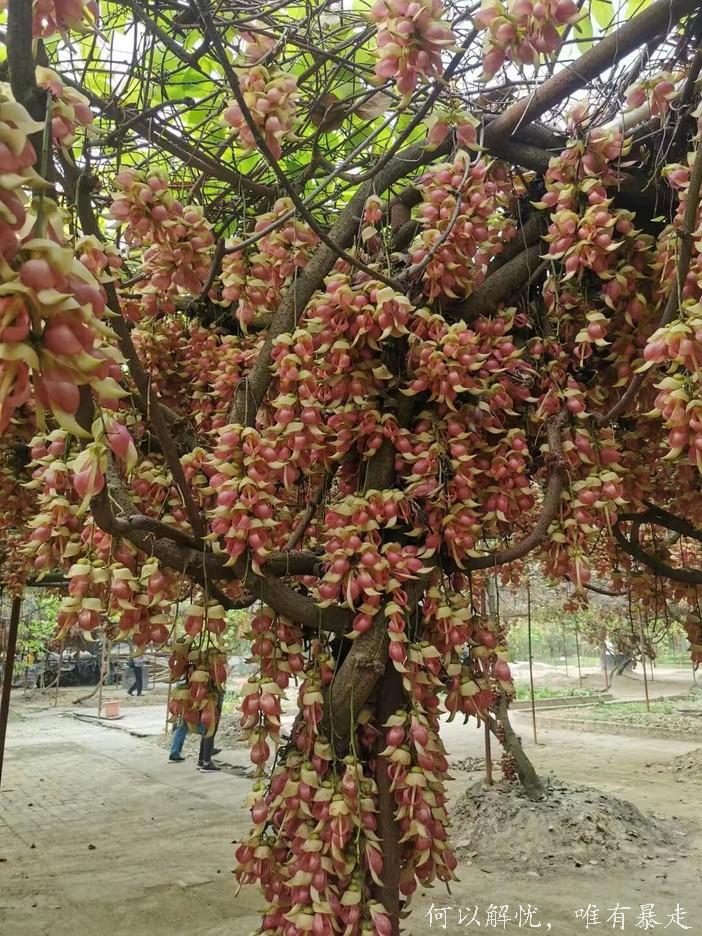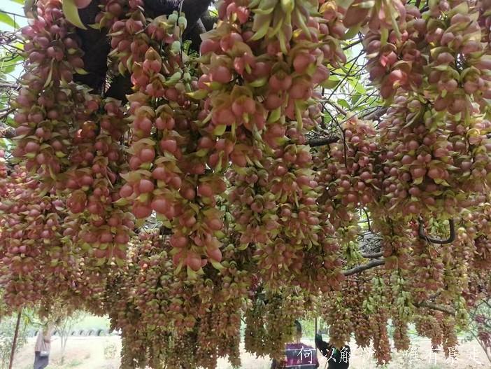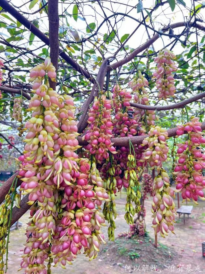 颜色丰富多彩,有红色、紫色、粉红色、米黄色、白色等,花串高低错落