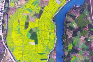 遇龙河两岸,3000亩油菜花如同金色的波浪,随风起舞。春日里,正是盛花时节。
