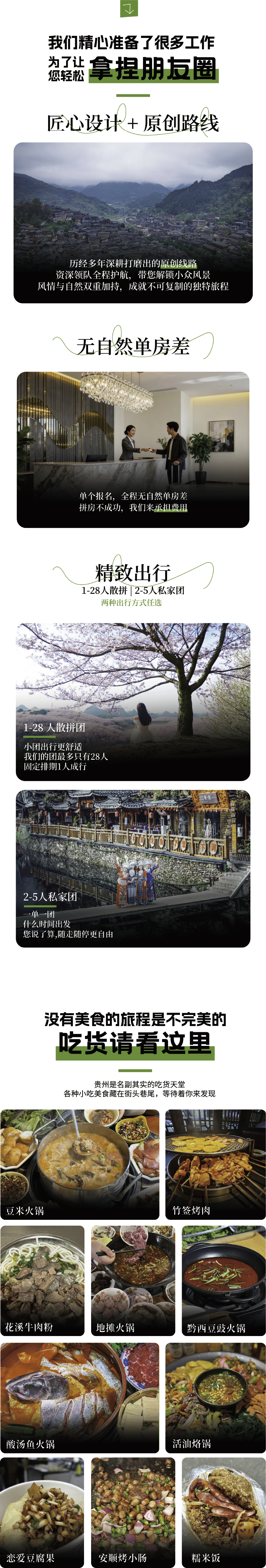 ① 今天是行程最后一天,中午自行在西江苗寨解决午餐,约中午乘车前往贵阳龙洞堡机场、贵阳北站。