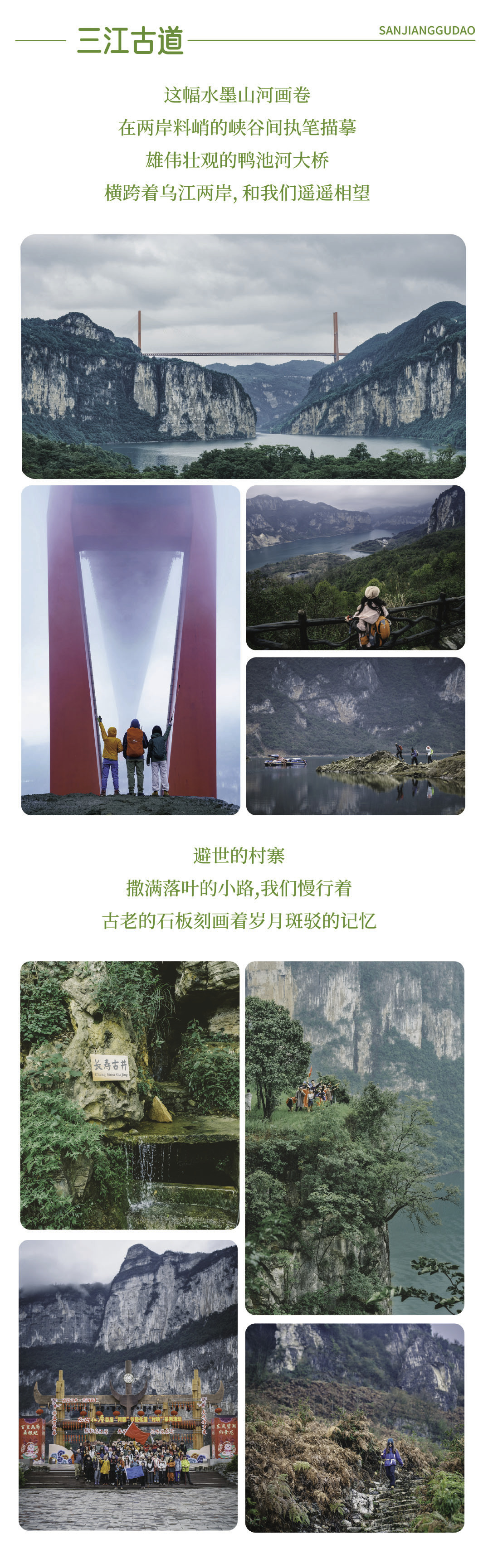 早餐后乘车前往黔西三江密道徒步起点,整理装备,简单热身后开启今日的徒步旅程,沿乡道,山路、绿道徒步。(中午适时分享各自带来的美食午餐)。