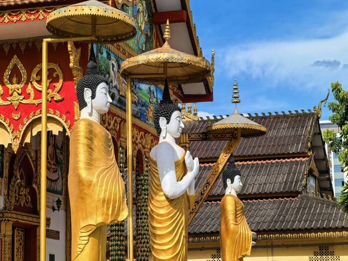 午餐我们可以选择在老泰边境的湄公河边吃,边吃饭边欣赏对面泰国廊开府的景色。午餐后前往西蒙寺参观,这里是万象蕞著名、蕞神圣的寺庙,也是万象香火旺盛的一个寺庙,又称神城寺。整个庙宇金碧辉煌,有些浮雕人物色彩鲜艳,既庄严又不失趣味性。每天有很多当地人及游客来这里祈福,尤其受泰国游客钟爱。