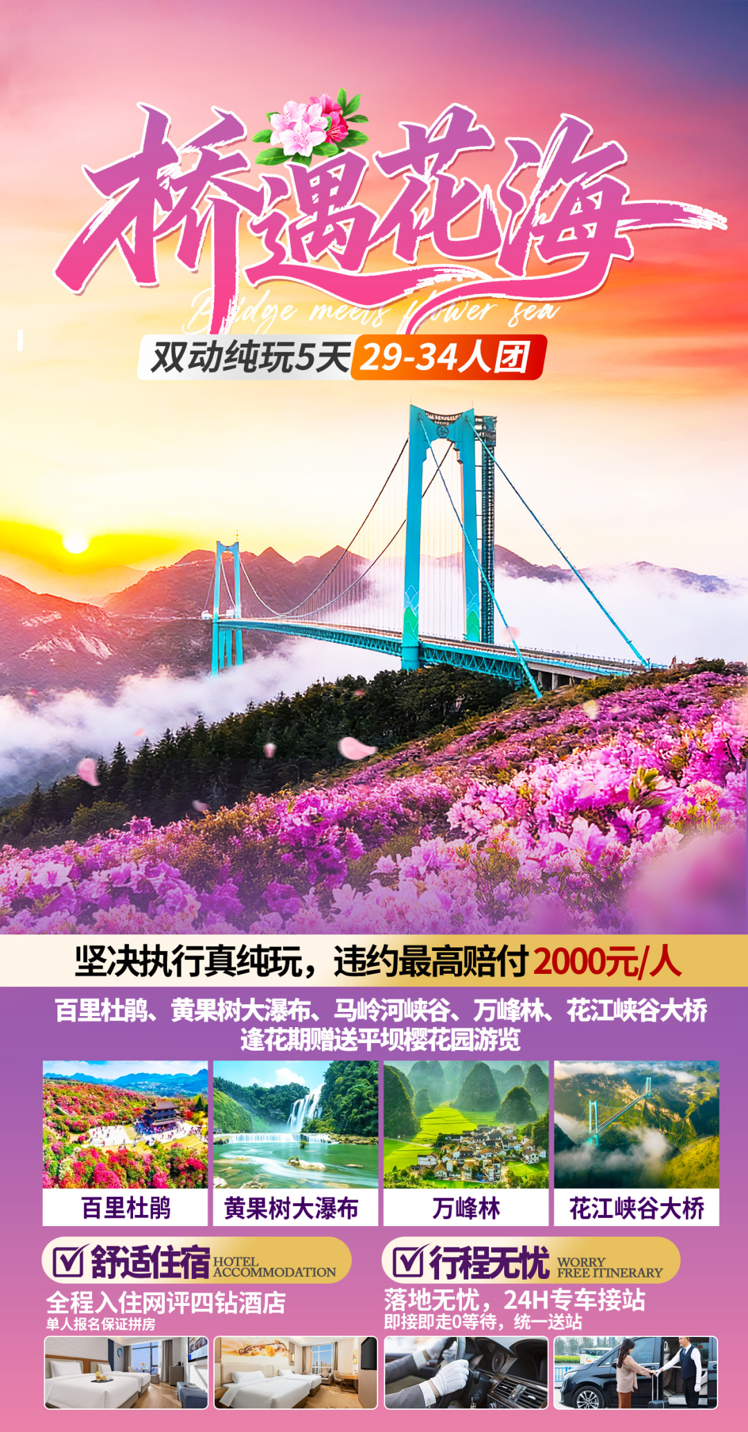 3. 不含景区必消小交通:百里杜鹃摆渡车70元/人+黄果树观光车及保险60元+万峰林观光车50元,费用需自理总合计180元/人